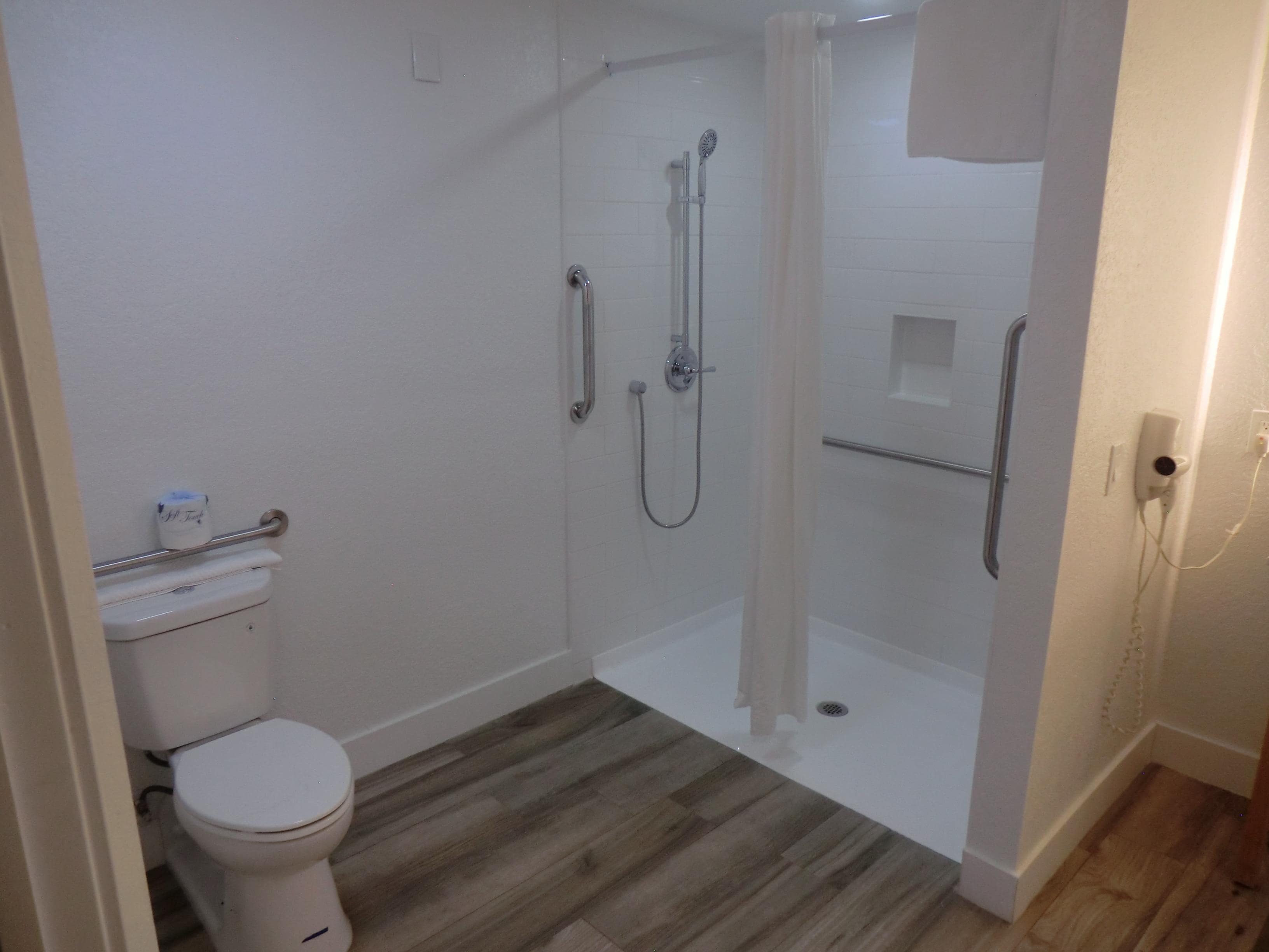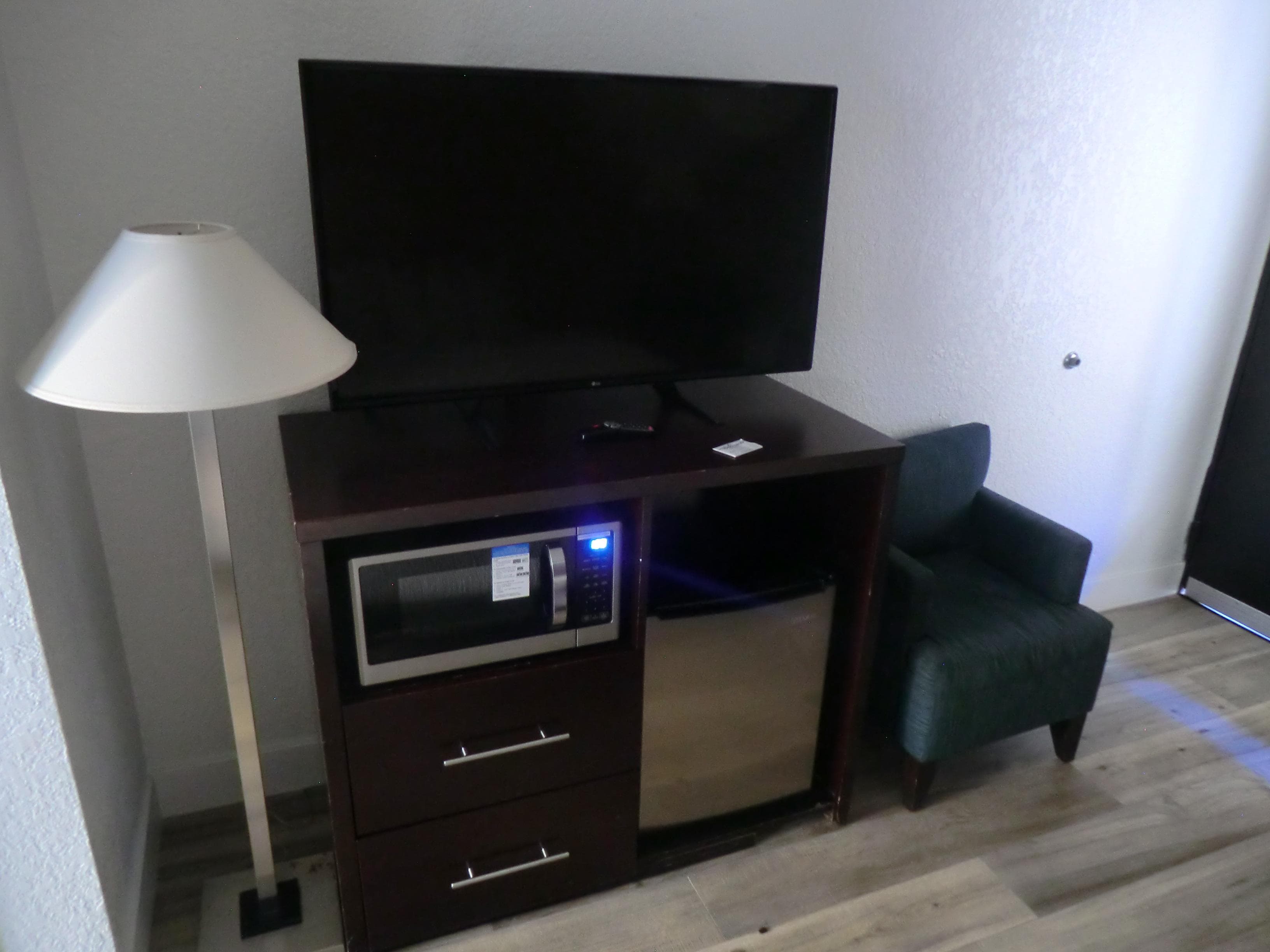 Trevlig personal, superskön uppvärmd pool och handdukar finns att låna vid poolen. Perfekt läge. Stor bra gratis parkering med många parkeringsplatser. Frukost finns att köpa för 10 dollar men den testade vi inte. Kylskåp på rummet så vi hade egen frukost med oss.