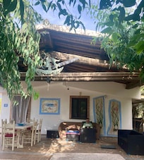 Das Haus steht am Ende einer kleinen Straße. Es hat einen Wohn-Essbereich, ein Schlafzimmer und im Bad. Übersichtlich und für uns traumhaft. Absoluter Pluspunkt ist die komplett überdachten Terrasse mit Loungemöbeln und einem Esstisch.Die Küche ist ausgestattet mit einem Herd, Backofen, Geschirrspüler (den wir nicht benutzt haben), Mikrowelle, Kapsel-Kaffeemaschine und einem riesigen Kühlschrank.Von hier aus sind es nur 50 m zum größten Sandstrand von Sardinien!!! Mit einem Strandsitz auf Rollen kann man einfach den Strandschirm und das eigene Strandequipment mitnehmen. Für einen kurzen Sprung ins Meer gehts auch gleich mit nur einem Badehandtuch.Maurizio hat uns regelmäßig über WhatsApp kontaktiert und gefragt, ob alles in Ordnung war. Auch unser später Check in um 23:00 Uhr war problemlos. Wir würden die Unterkunft immer wieder buchen, da man das kleine Haus für sich allein hat und der Strand sofort vor der Tür ist. Traumhaft!