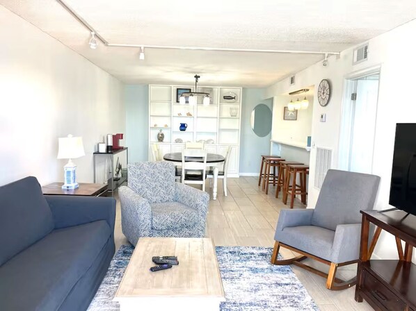 Beachfront condo - 3 BR Family Getaway ligger nära Thomas Drive och erbjuder allt du behöver. Som gäst kan du hålla dig uppkopplad via wi-fi på rummet.