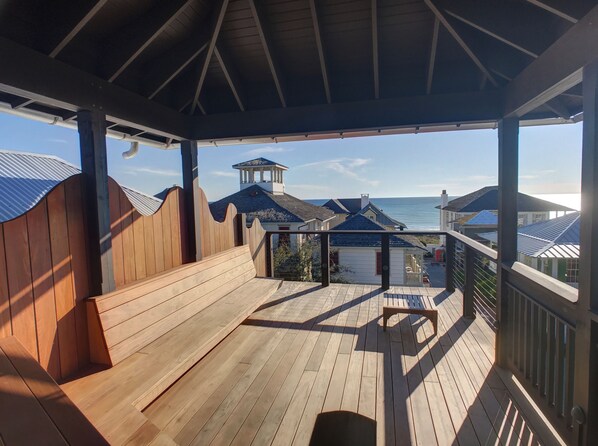 Det finns trappor från baksidan av huset som leder till en tredje våningen däck. Den mest populära platsen i huset!