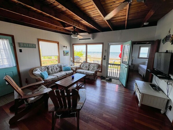Relax with friends and family at this bay front beach house. Feel the stress of the mainland dwindle away as you sip on a cocktail and forget about the stresses of the day to day grind. This is a well kept house that is professionally cared for and managed. Air conditioning, internet, washer and dryer all included.