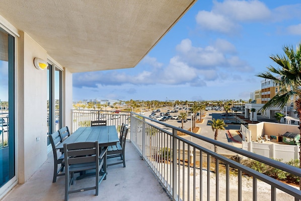 Waterscape's A315 is a colorful unit adorned with stylish furnishings and beautiful artwork. The open floor plan of this home allows every room to lead onto a spacious balcony with outdoor seating. The condo's kitchen is well appointed with granite countertops, stainless steel appliances, and beautifully tiled floors. All dishes, cooking utensils, and bake ware are provided to complete and serve meals. The dining area has a large ornate table with bench style seating people. This beautiful home offers a twin bunk area for extra accommodations. The open living room houses a queen sofa bed, TV, and DVD player. There is a half bath located off of the main living area near the bunk room. The primary bedroom features a king bed, private bath with stand up shower and garden tub, TV, and DVD player. The second bedroom includes a queen bed, private bath with stand up shower and garden tub, TV, and DVD player.