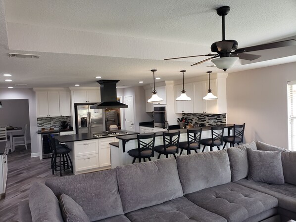 Booked this house for Thanksgiving week. It was perfect for our big group to hangout, play games, and eat. Definitely one of the best stocked homes I have ever stayed in. Internet went out but host responded quickly to walk me through re-setting everything to get it back on track. Dishwasher is smaller than I am used to so we ran it twice a day to have everthing we needed for both breakfast and dinner. The biggest negative is the placement of the vent/hood over the stove. It should be back, towards the center of the island more. It was fine until we had a guest over 6 feet tall that was cooking; he came very close to banging his head on it several times. Everything else was great!