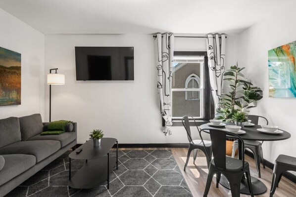 Experience Philadelphia like a local from this modern 1-bedroom, 1-bath retreat in historic Germantown. Perfect for couples, small families, business travelers, and extended stays, this stylish apartment blends neighborhood charm with modern comfort and convenience.