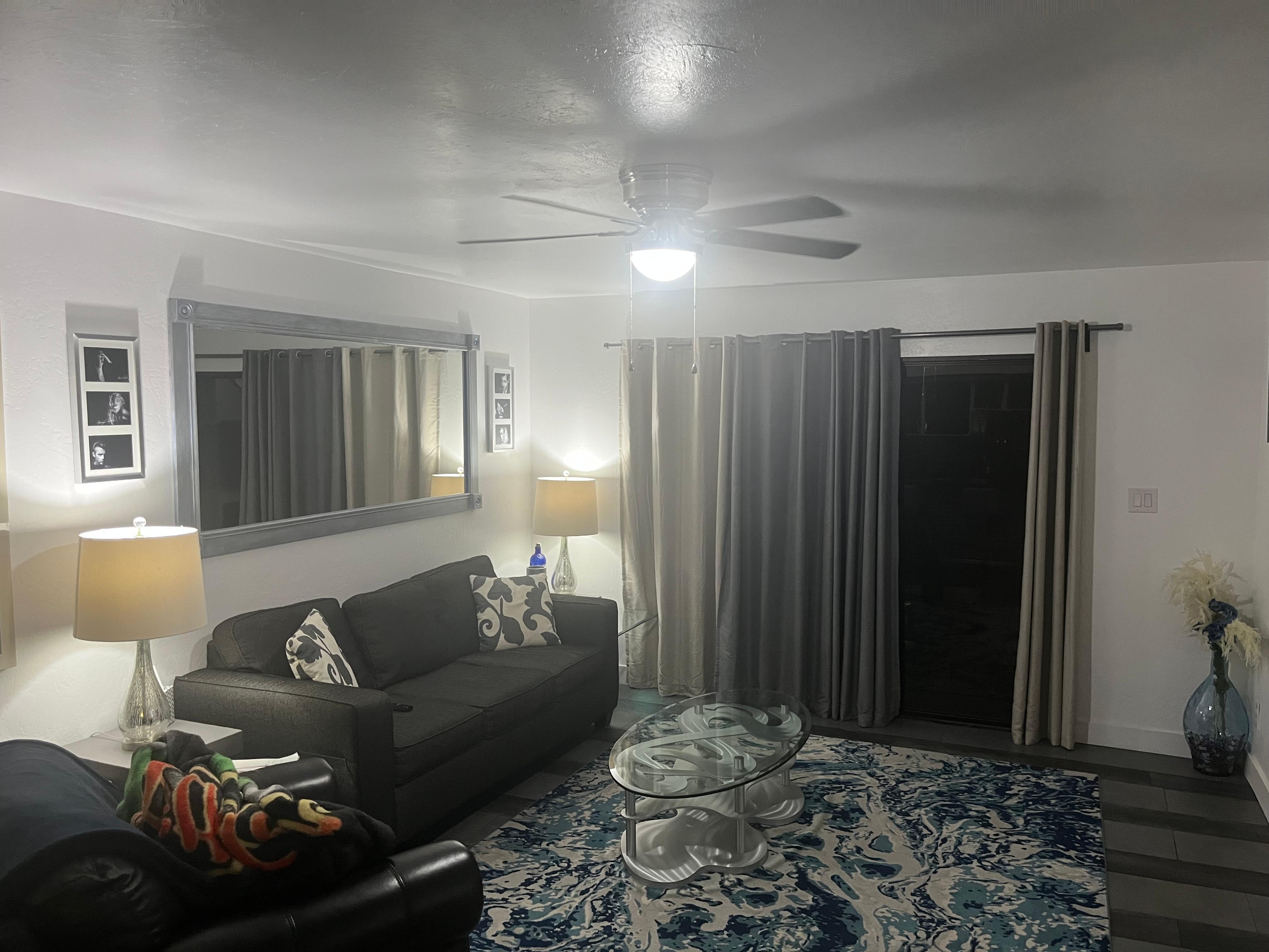 The unit was lovely and well furnished and the check-in was easy. The only drawback was no response to early communication with the property mgr regarding accessing early or leaving late. Other than that, it was lovely. Thank you.