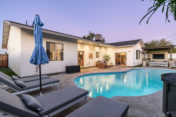 Welcome to Sunbaked Terrace, a vibrant Scottsdale retreat where desert charm meets resort-style living. Designed for groups, families, and friends traveling together, this home invites you to slow down, spread out, and fully enjoy every moment, whether that's floating in the pool under the Arizona sun, gathering around the fire pit at night, or laughing through a friendly game indoors. Every space in this home was thoughtfully curated to create an experience.