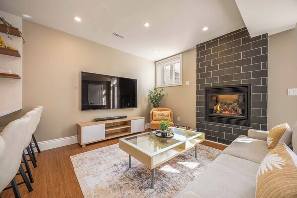 Samtliga gästrum hos Cozy Executive Suite, Sleeps 6, Private Entry,Free Parking . ståtar med förmåner som eldstäder och luftkonditionering, samt ytterligare bekvämligheter såsom gratis wi-fi och skrivbordsstolar.
