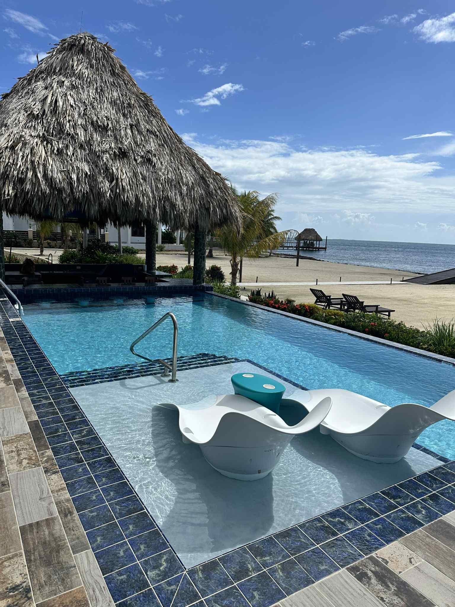 * Outdoor Oasis: Step into your own backyard paradise, featuring a stunning infinity pool with a swim-up bar, perfect for enjoying cocktails while soaking up the sun. The sunken BBQ grill area is ideal for hosting gatherings and savoring delicious meals in a tropical setting. Relax on the large pier or just cool off in the Caribbean Sea.