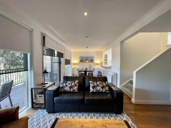 This two-bedroom villa has all the amenities required for a comfortable stay. After a day exploring the area, relax on the balcony with a glass of your favourite beverage be it a coffee, tea, a fragrant Hunter Valley wine or a boutique beer whilst you decide what is for dinner.