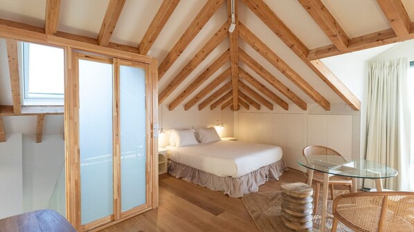 The rooftop loft is a haven of tranquility, designed with wabi-sabi influences to create a peaceful escape from the city's buzz.