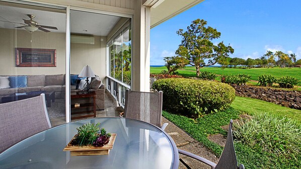 • Flat screen TV in living room, access to private lanai