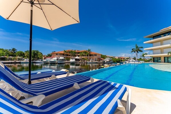 🏊 Infinity pool overlooking the canal, just steps from your terrace