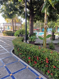 Ja, boendet har en utomhuspool och en barnpool. Poolen är tillgänglig 08.00–21.00.