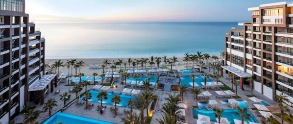Personalized check-in Concierge Service A dedicated butler 24-hour room service Bilingual staff Located on a powder-soft sand beach Lobby with central atrium Ocean view suites with private balconies Collection of limited-edition lofts and penthouses 8 glistening pools with lounging areas World-class Spa Gym and tennis court Complimentary resort activities Banquet Hall for weddings and events Safe-deposit box (in-room) Same day laundry and dry-cleaning service Kids’ Club Babysitter (additional fee) Live music (weekly) Tours & Transportation (additional fee) Wheelchair accessibility On-call medical care Daily housekeeping and turn-down service Complimentary Wi-Fi The Market for convenience items