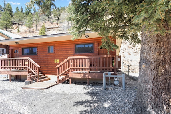 Welcome to "Casa Del Rio Rojo 10".....your cozy escape just one block off Main Street, located in town at 210 E. High Street, right in the heart of Red River! This location is walkable to everything in Red River with views of the Red River Ski Area! This cozy cabin is 1 bedroom with a Log queen bed and a queen futon, sleeping 4, 1 bathroom with a jetted tub, a small stocked kitchen with pots, pans, dishes & silverware, a regular coffee maker, with modern comforts like a smart TV, gas fireplace, high speed WiFi, and an in-unit washer and dryer.