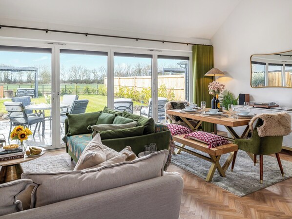 Living area: Smart TV, Woodburner, Bi-Fold Doors Leading To Garden