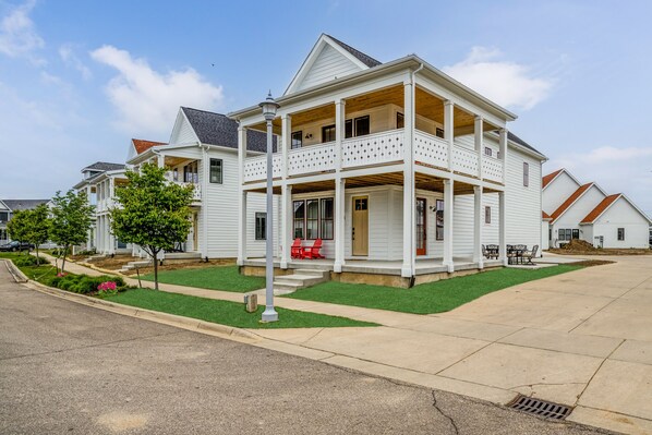 Welcome to our family-friendly beach town retreat, Estate of Grace. This is a new 4 bedroom, 2.5 bathroom house with a sprawling wrap around porch to take in views of the St Joseph river. Your home away from home has high end touches to make you feel like you’ve never left home including Lazy-Boy sleeper sofas & 50”-55” smart TVs throughout. All bedrooms have king size beds with local, comfy mattresses from Rested Pillow. The gourmet kitchen offers Whirlpool appliances including an air fry range.