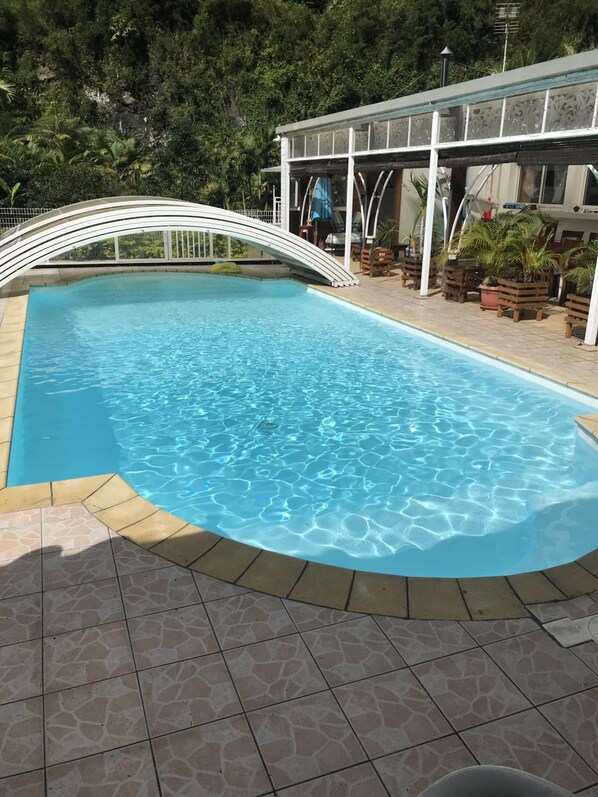 Pensionat i Salazie med kafé och inomhuspool