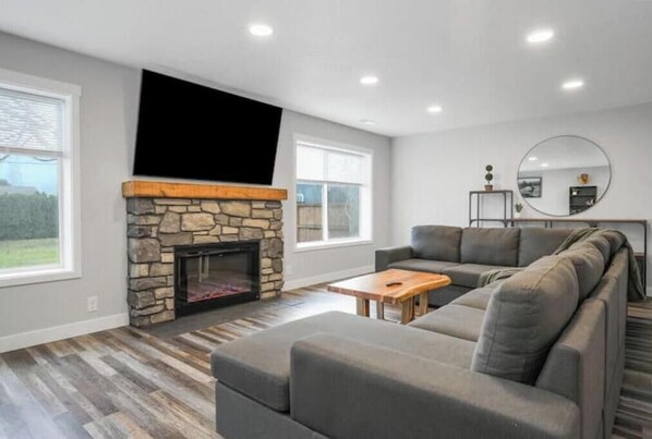 We have three bedrooms each have a queen bed. We also offer a queen air mattress for extra people or there’s a large couch that can sleep extra as well-