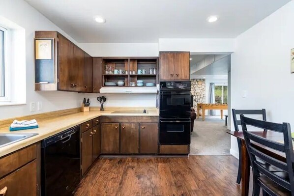 The kitchen is full and complete with a dishwasher, microwave, blender, toaster, coffee maker and more. With this kitchen you are free to cook-up a gourmet meal if you wish. It's especially easy to do with a grocery store only moments away.