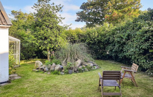 Den dekorativt planterade trädgården är en riktig oas för välbefinnande. Hitta en trevlig plats att njuta av tiden utomhus och sitt tillsammans bekvämt vid eldskålen på kvällen.