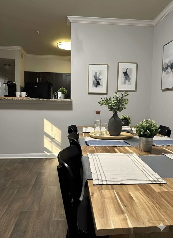Our home is the perfect retreat, On-site amenities include a Pool/Fitness Center/Clubhouse for your enjoyment, sunset views from balcony, pool table, shuffle board and a quick and easy booking process. It’s super easy to get around and grab groceries, great dining, or anything you might need during your stay.