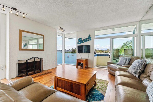 I köket har allt du behöver för att tjäna upp en fest! Massor av lagringsutrymme för mat och en bardisk med avföring och utsikt över bukten (South Unit). De levande rum har plysch läder soffor, kabel-TV och DVD-spelare. Titta på dina favoritprogram eller bara koppla av på soffan och titta ut till den fantastiska utsikten över bukten genom fönstren från golv till tak. Den gas spis är alltid trevligt för kyliga kvällar. Varje lägenhet kommer med en täckt parkeringsplats. Vi har inte luftkonditionering, men vi erbjuder fans för din användning.
