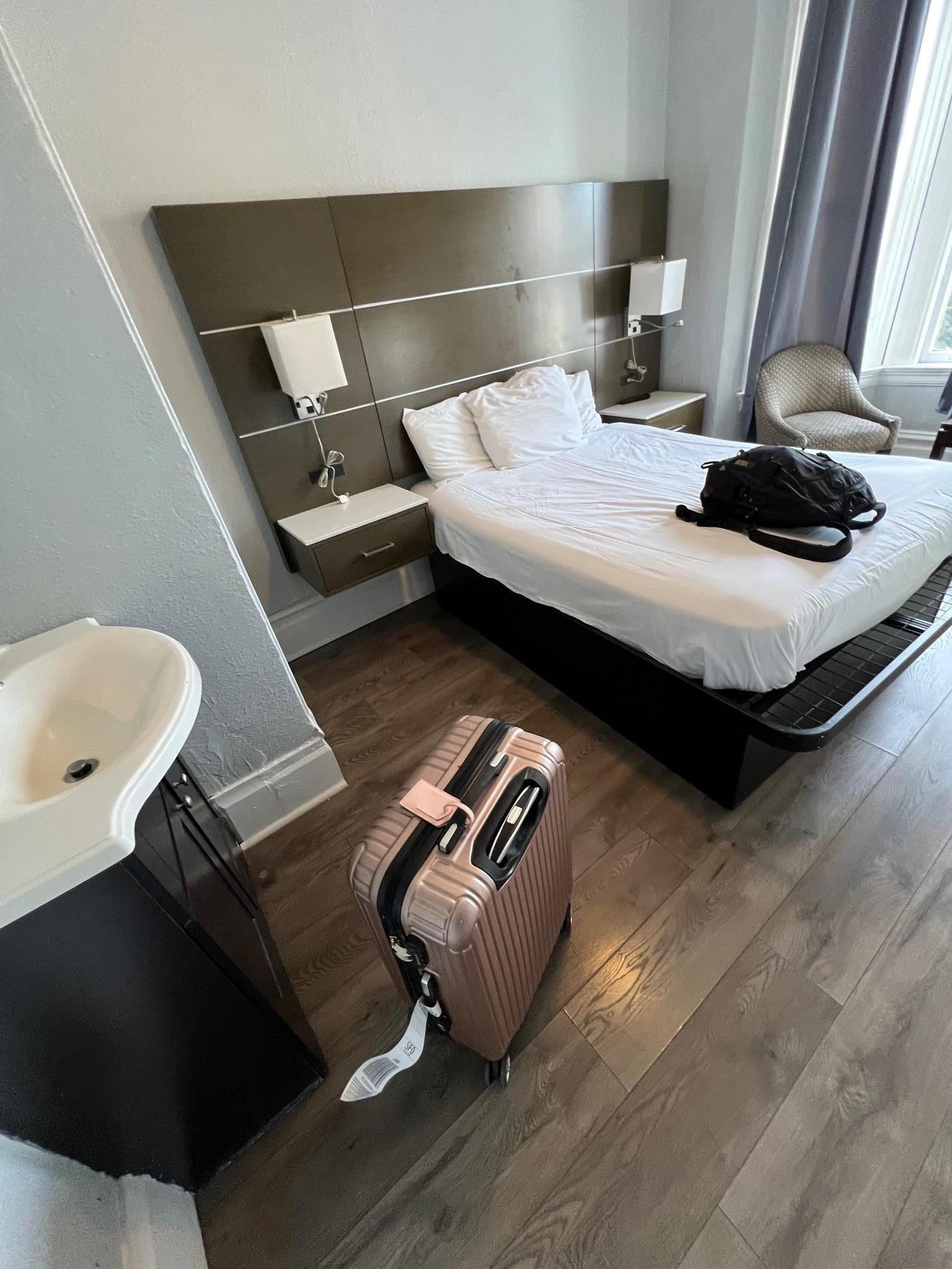 Mycket billigt för det här läget i San Francisco. Ren och fräsch dusch och toa i korridoren, handfat på rummet. Om du vill ha tyst när du sover är detta inte hotellet för dig. I bottenvåningen ligger en bar som har livemusik och hotellet är mycket lyhört. Rummen ligger mot motorvägen och bussarna stannar precis nedanför fönstret. Dock ett hotell med mycket charm och den, för äldre hus i SF, karakteristiska doften av kattlåda
