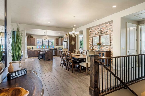 We had a large group and we fit so comfortably in this house. Our little kids loved the basement and there were so many large gathering spaces we never felt on top of each other or crowded. The huge table is the real winner! It was so fun all being able to sit and eat meals all together. Also the kitchen is stocked so well - we made all our meals over the weekend and it had everything we needed.