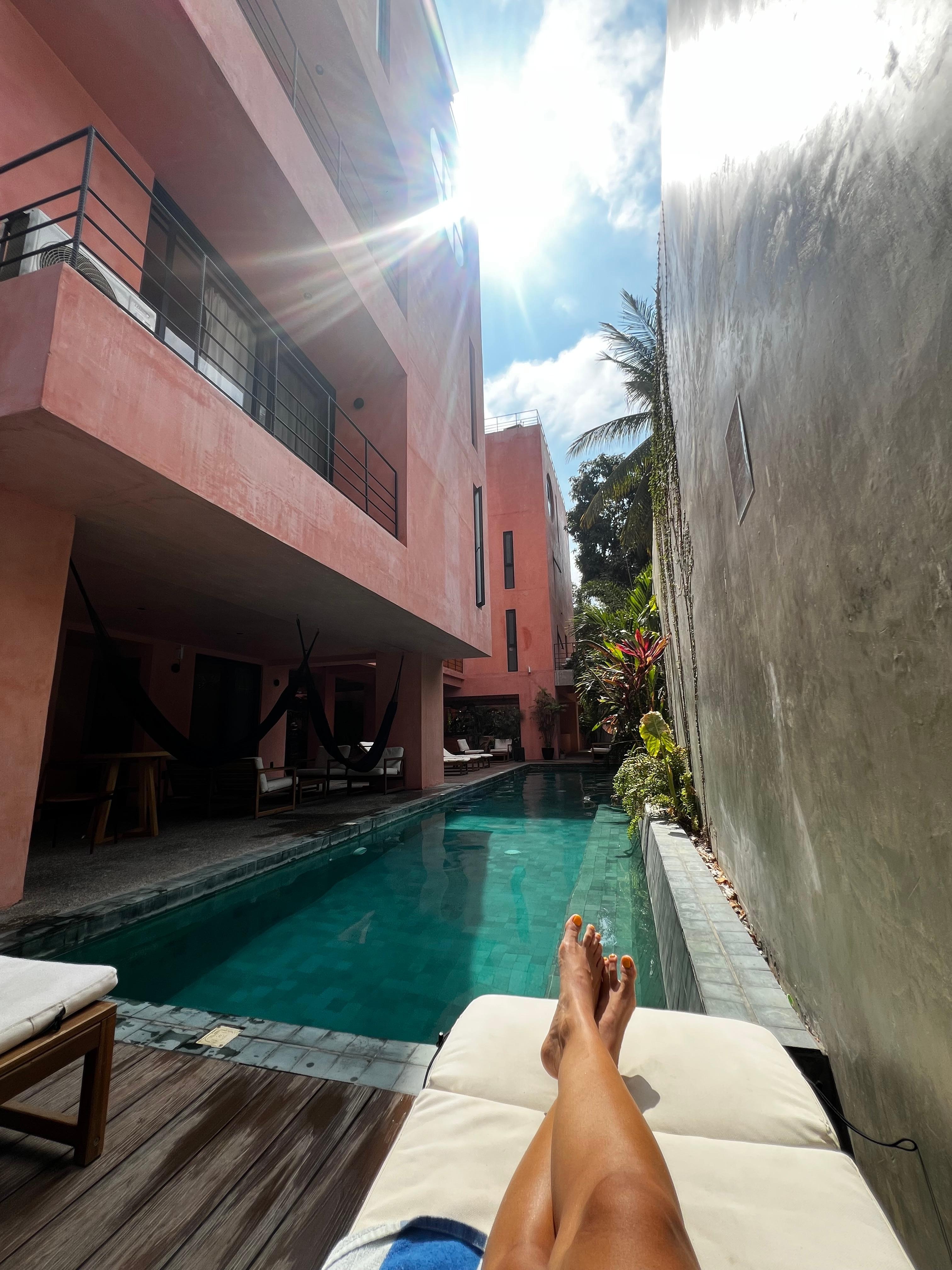 Great decor and design. Great vibe from the staff and super helpful. The gym on the rooftop is great, the food options are delicious, but wished the included breakfast would include some eggs or some type of protein. Good location, but you will have to walk a bit in the heat to get to other restaurants or the beach. Workspace was great, just wished the WiFi would work better in the rooms since sometimes it was too hot to work outside. It was nice that they provided mosquito repellent for everyone-you'll need it. The pool is cold and refreshing. Great stay!