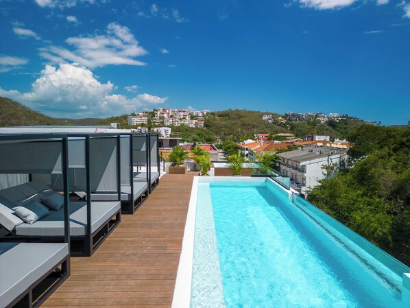Cozy studio apartment near beach with roof top pool, AC, WiFi