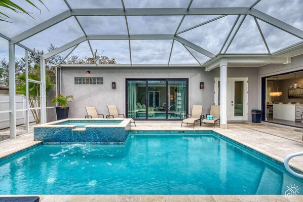☀ Screened pool and hot tub in a private courtyard