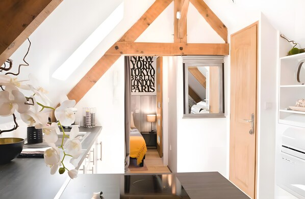 Located on the 3rd and top floor of a renovated historic building, this 35 m² loft with air conditioning is the perfect base for exploring the streets of Sarlat, just 100 m from the medieval city. Ideally set in a lively yet peaceful neighborhood close to shops and steps from the old town, the loft offers a spacious and comfortable living area. A small free parking lot is right next to the building, with several other free parking options within 100 m. Enjoy a stylish and central place to stay while you discover Sarlat and its surroundings.