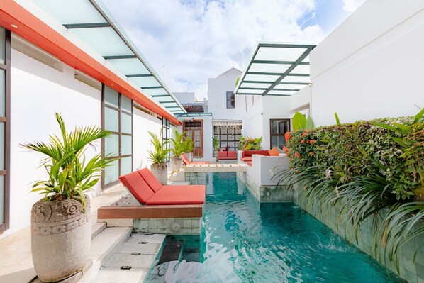 Hotell för hela familjen med strandbarer, 9 min promenad till Seminyak Beach