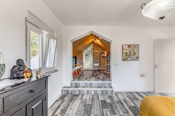 Ja, husdjur är tillåtna på boendet.