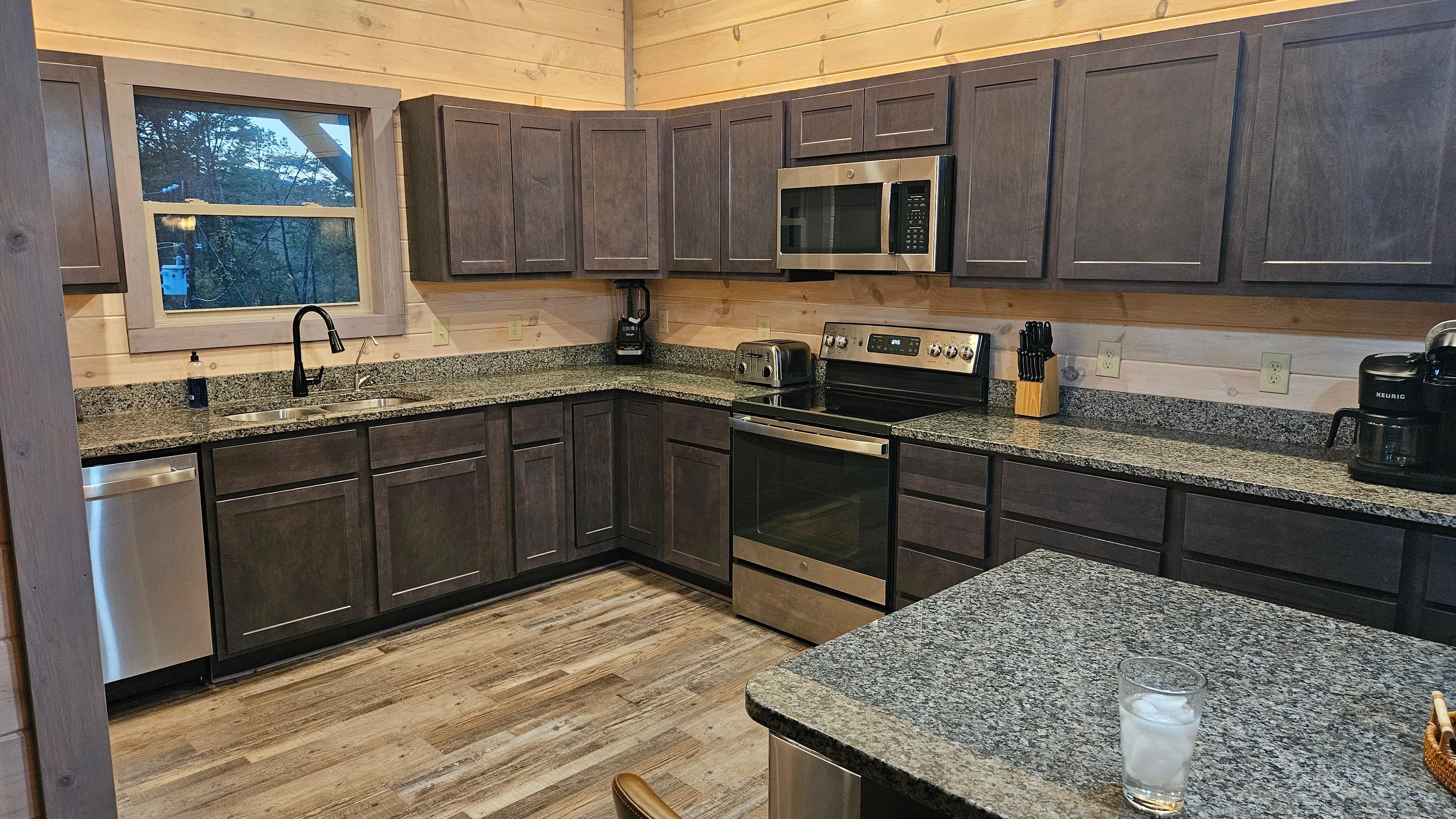 Enjoy stainless steel appliances, ample counter space, and both Keurig and drip coffee makers—plus stocked cookware and thoughtful extras to make cooking feel effortless.