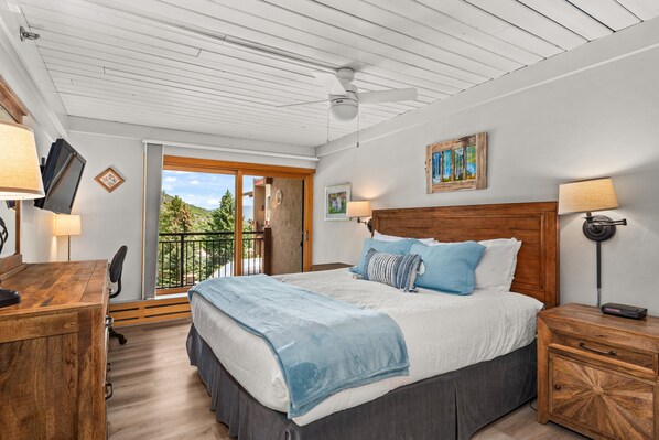 Denna standardklassade 1 sovrum, 1 badrum erbjuder expansiv utsikt över dalen, ett fullt utrustat kök och eldstad. Sängkläder är en king size-säng i sovrummet och en bäddsoffa i vardagsrummet. Erbjuder ett stort värde belägen i sluttningen med hushållning ingår.