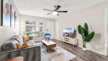 SoCo 2BR corner suite, king bed, fast WiFi w/ pool