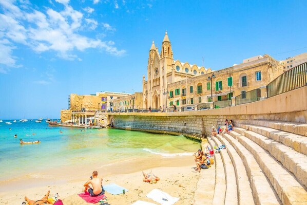 - Take advantage of the apartment’s prime location to explore the beautiful coastline. Relax on the beaches of Sliema, indulge in water sports, or take a leisurely walk along the picturesque promenade.