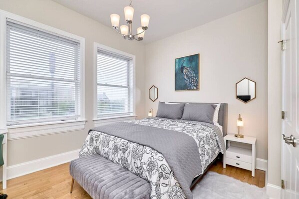 This apartment has 500 sqft of living space with the stainless steel appliances, stylish décor with memory foam mattress, fully equipped kitchen and dedicated workspace. It also has a hardwood flooring, large windows with a view of cityscape and park.