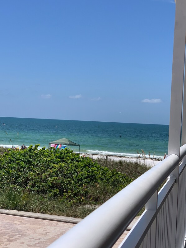 Balkongen vetter mot Syd så har hela dagen sol och har en loveseat som vetter mot havet, ett högre bord och stol satt för enkel visning av havet under din morgon frukost eller middag med ljusstake. Det finns två täckta parkeringsplatser precis utanför enheten med gott om extra parkering för dina gäster. Komplexet är gated med uppdaterad färg, paver drive och har en mycket trevlig privat uppvärmd pool som ligger bara några steg mellan enheten och stranden.