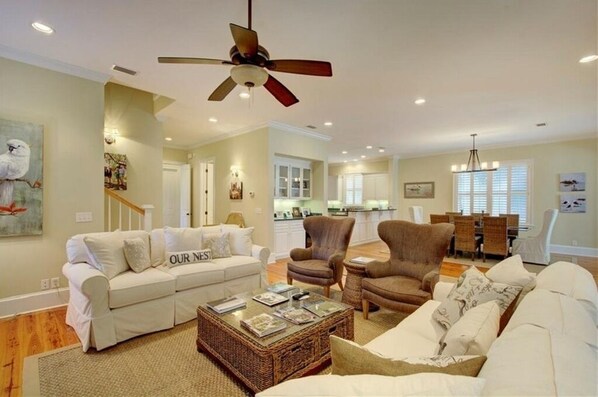 Kom en flykt från liv och rörelse i denna fantastiska strandstuga. Bara en kort promenad till stranden kan du höra havet från verandan! Detta fantastiska hus har 3 våningar med öppen planlösning - stort rum / kök / matsal och 5 sovrum med 4 badrum. Generösa stora sovrum plus stort förvaringsutrymme. Naturligt tallgolv i hela, hiss från marknivå till alla våningar mot en extra avgift. Kök med granitbänkar, gasutbud, rostfria apparater och ett överflöd av skåp och stort skafferi. Master svit på huvudnivå med stor klädkammare och lyxigt bad. Ytterligare 4 rymliga sovrum på 3: e nivån, alla med klädkammare, 2 med privata badkar och 2 med delat badkar. Första nivån är värd för dubbelgarage, stort spelrum, 2 skärmad verandor och pool i privat innergård. Detta hus har all avskildhet men ändå det bästa läget på East Beach! Levereras med gratis parkering för fyra-fem bilar, två i garaget och en parkeringsplatta framför hemmet. Kom och njut av Saint Simons Island med detta en av ett snällt fritidshus!