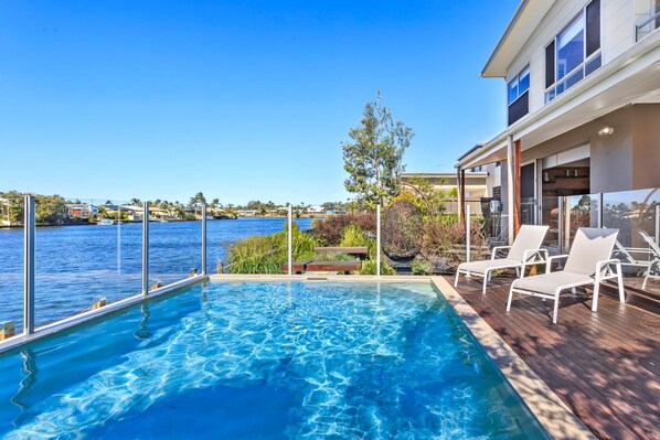 House was excellent to host our large family for Christmas. Everyone thoroughly enjoyed the pool, spa, pizza oven and entertaining areas. A fabulous view of the canal, created a fab vacay.