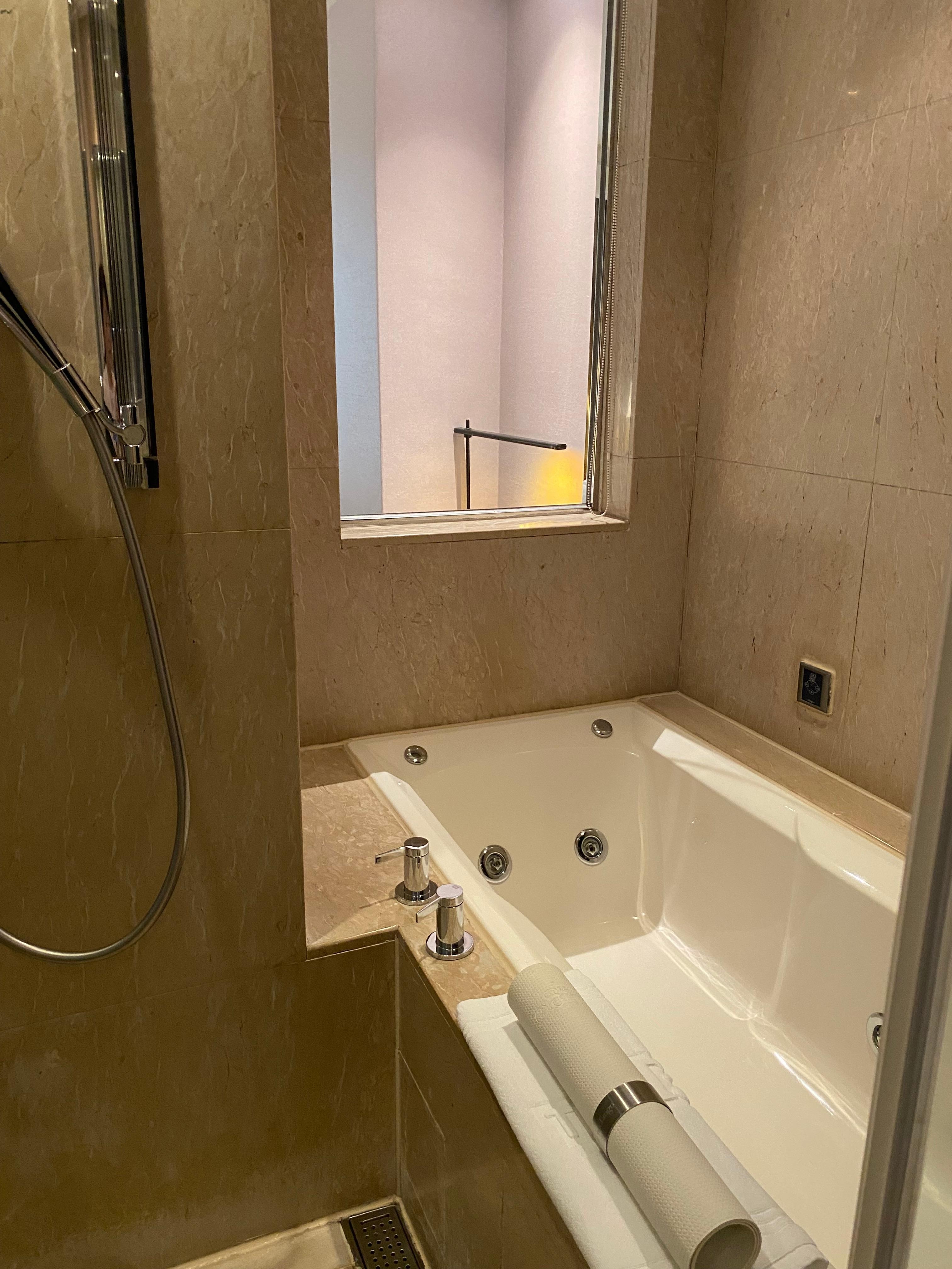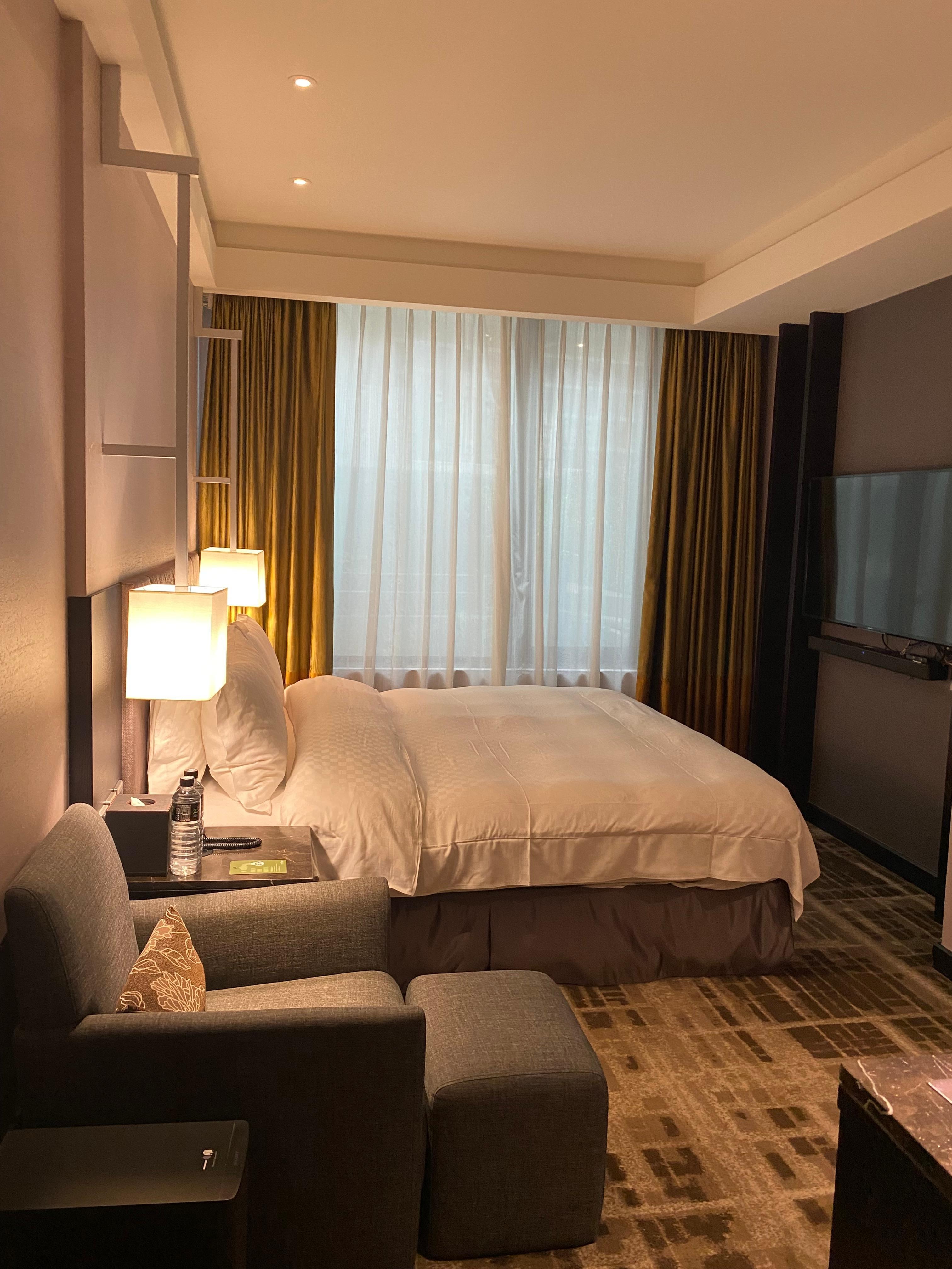 Location is great! Very close to MRT station and shopping with walkable distance to restaurants. Room is very spacious compared to other Asia hotels. Nice to have the room safe and plenty of bottled water for the 30 degree C temps. Bathroom is large and luxurious with a large tub and TV. Front desk staff are very courteous & helpful and spoke some English.