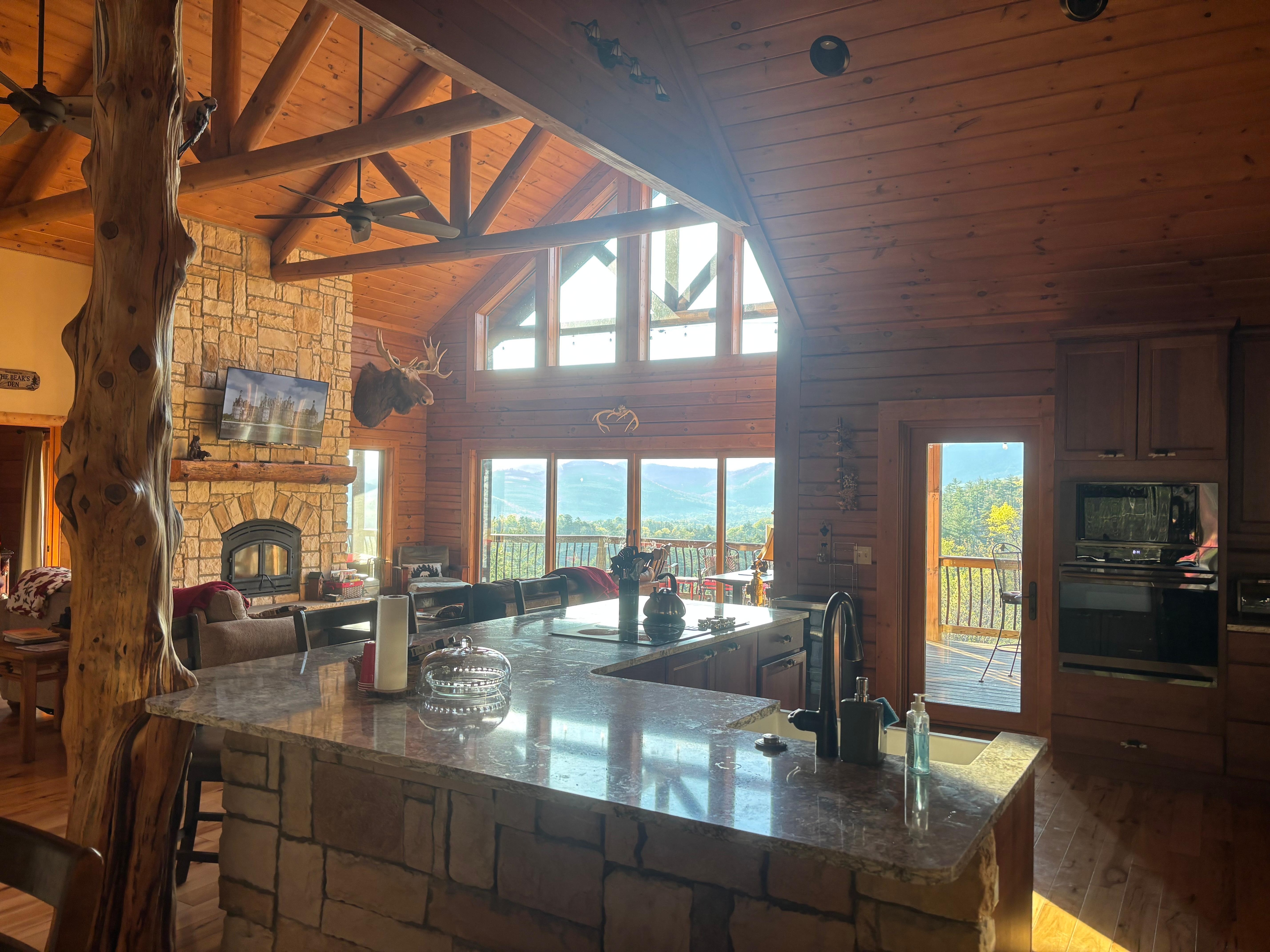 Everything about our stay was incredible! Kurt & Jill were easy to deal with and always quickly responded to questions. There were 10 additional it’s and it was the perfect size for all of us! The kitchen was nice and big so there was plenty of room for family divers between the counters with stools and table and the kitchen was surprisingly well stocked with essentials for cooking. But where we spend the most time was outside of the deck taking in the ever changing scenery of the mountains. We had family and friends in from Wisconsin and Georgia for my dad’s 80th birthday and EVERYONE was so pleased and had the best time!