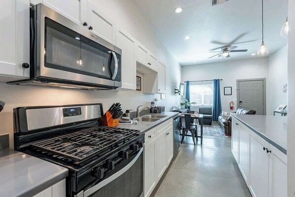 - Fully Equipped Kitchen: Cook with ease in a well-stocked kitchen with modern appliances, cookware, crockpot, and plenty of counter space.