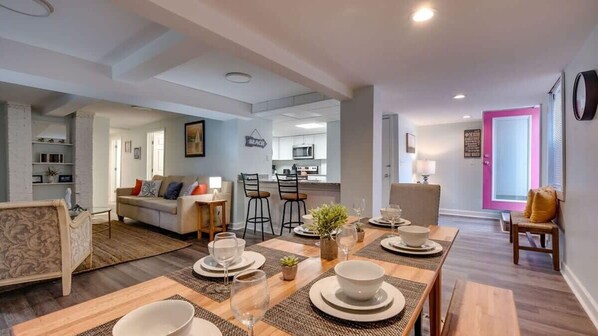 Multi Level Townhome, med privat hiss, nära till affärer och restauranger, perfekt för familjer!