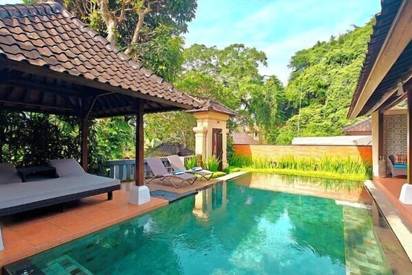 Villa Nirvana ligger nära en vattenpark i Ubud. Ubuds apskog och Sanur Beach är exempel på områdets vackra natur, och bland de lokala turistattraktioner hittar du Spirituellt Center Sinar Suci och Threads of Life Indonesian Textile Arts Center. Heliga Apornas Skogreservat och Gaya Keramikkonstcentrum är också värda ett besök. Passa på att utforska området med friluftsaktiviteter som cykelturer. Gå till vår reseguide för Ubud