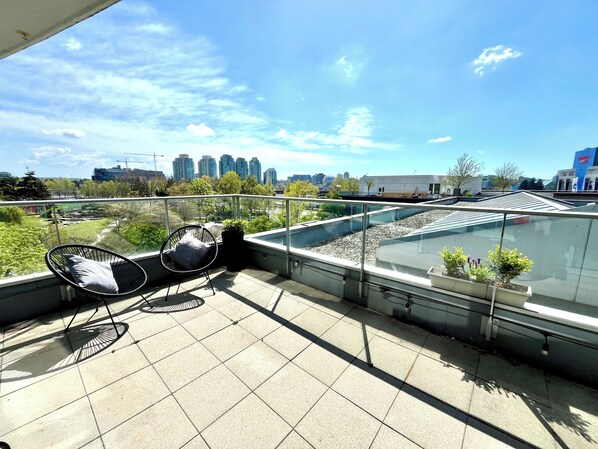 1-Bed 1-Bath w/Private Deck, EV Parking, and steps from Pool, Sauna, and Hot Tub ligger nära BC Place Stadium och Canada Place Cruise Ship Terminal, och erbjuder tvättmöjligheter, ett fitnesscenter och ännu mer. Som gäst kan du hålla dig uppkopplad via wi-fi på rummet.