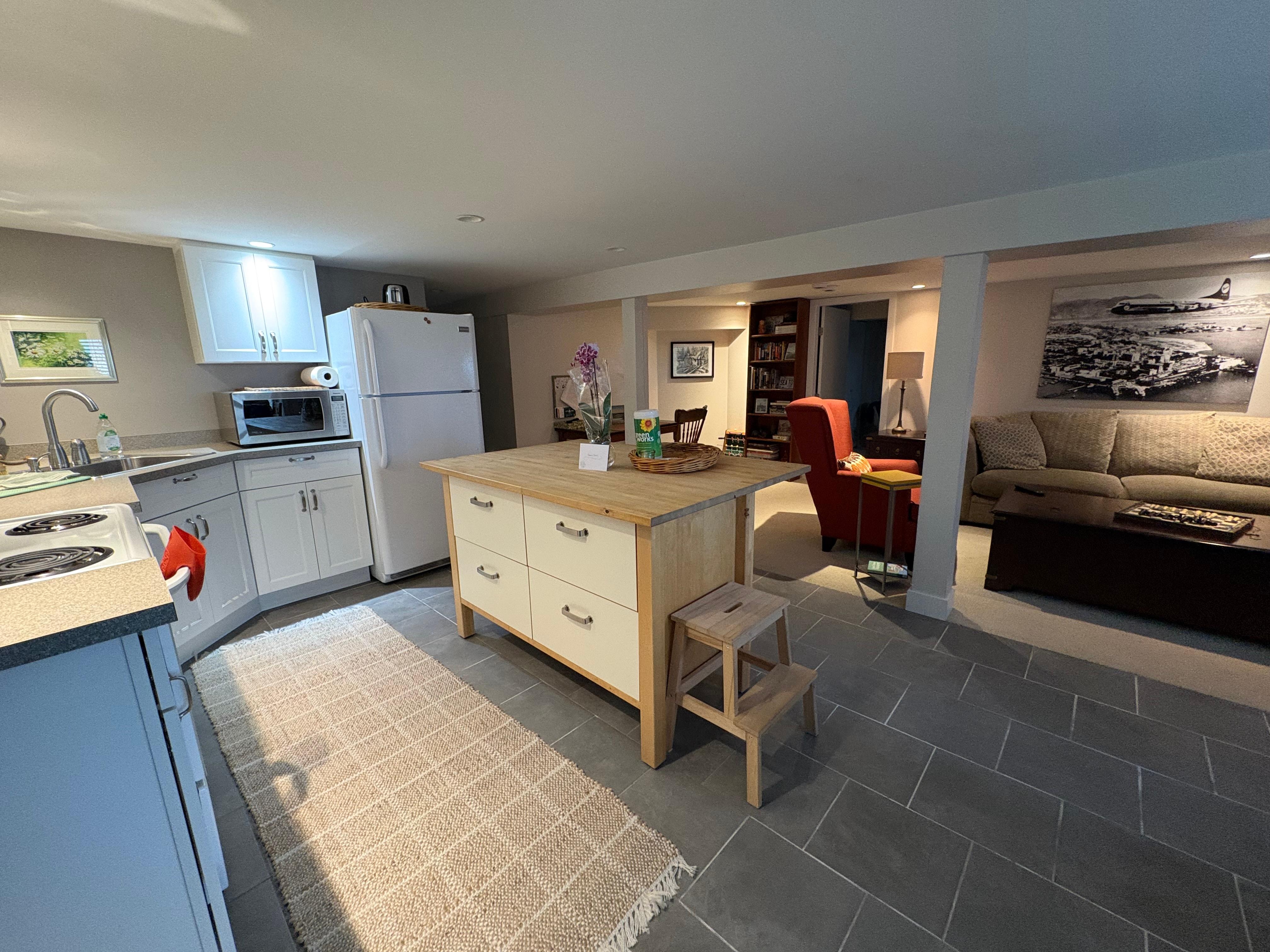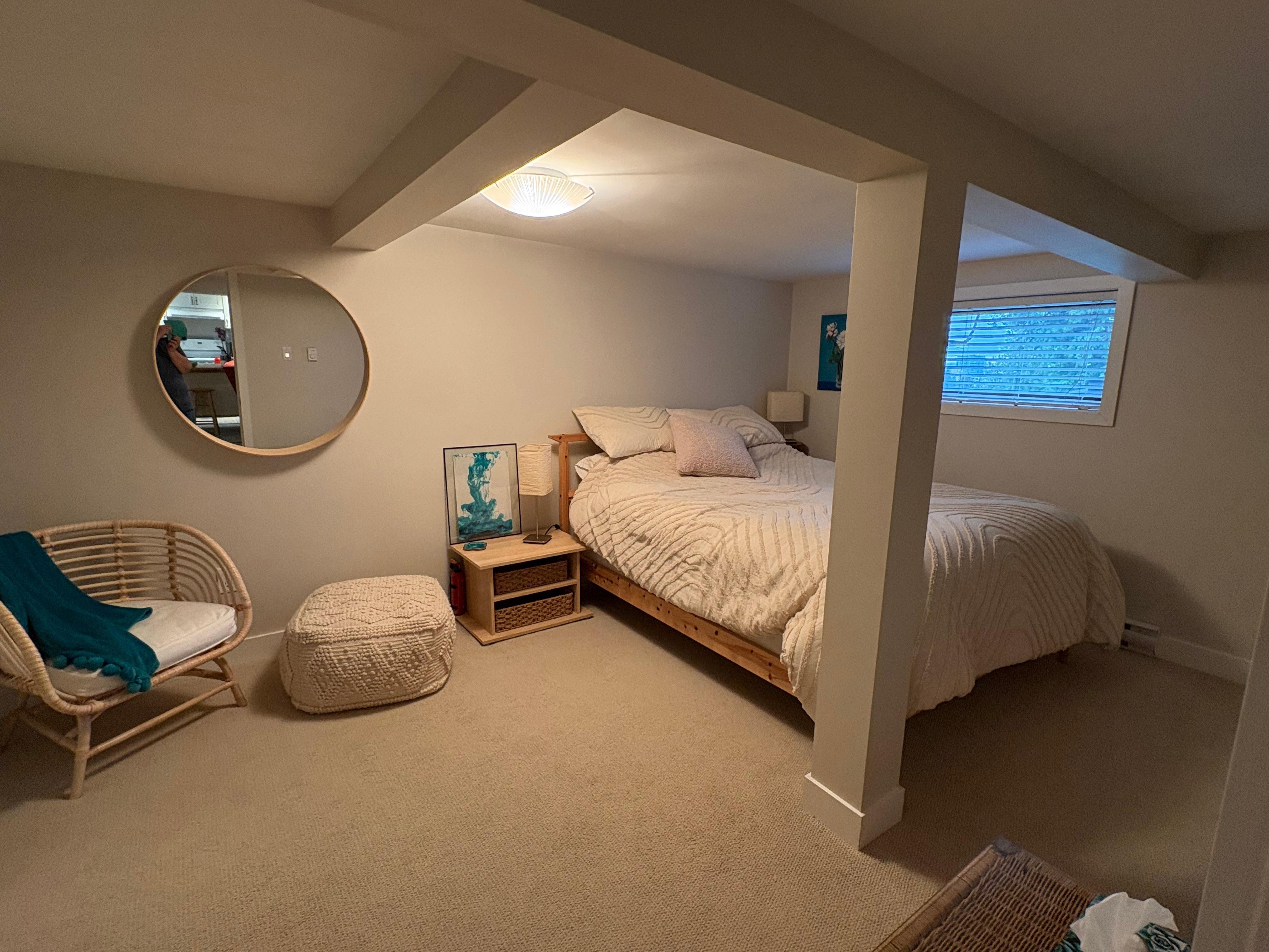 Vårt hem erbjuder en nyrenoverad, fullt möblerad 650 kvadratmeter fristående svit med ett sovrum. Gästerna behandlas på en egen ingång på norra sidan av huset, precis vid trädgårdarna. Parkering finns på framsidan av huset eller ovanför den bakre uppfarten.